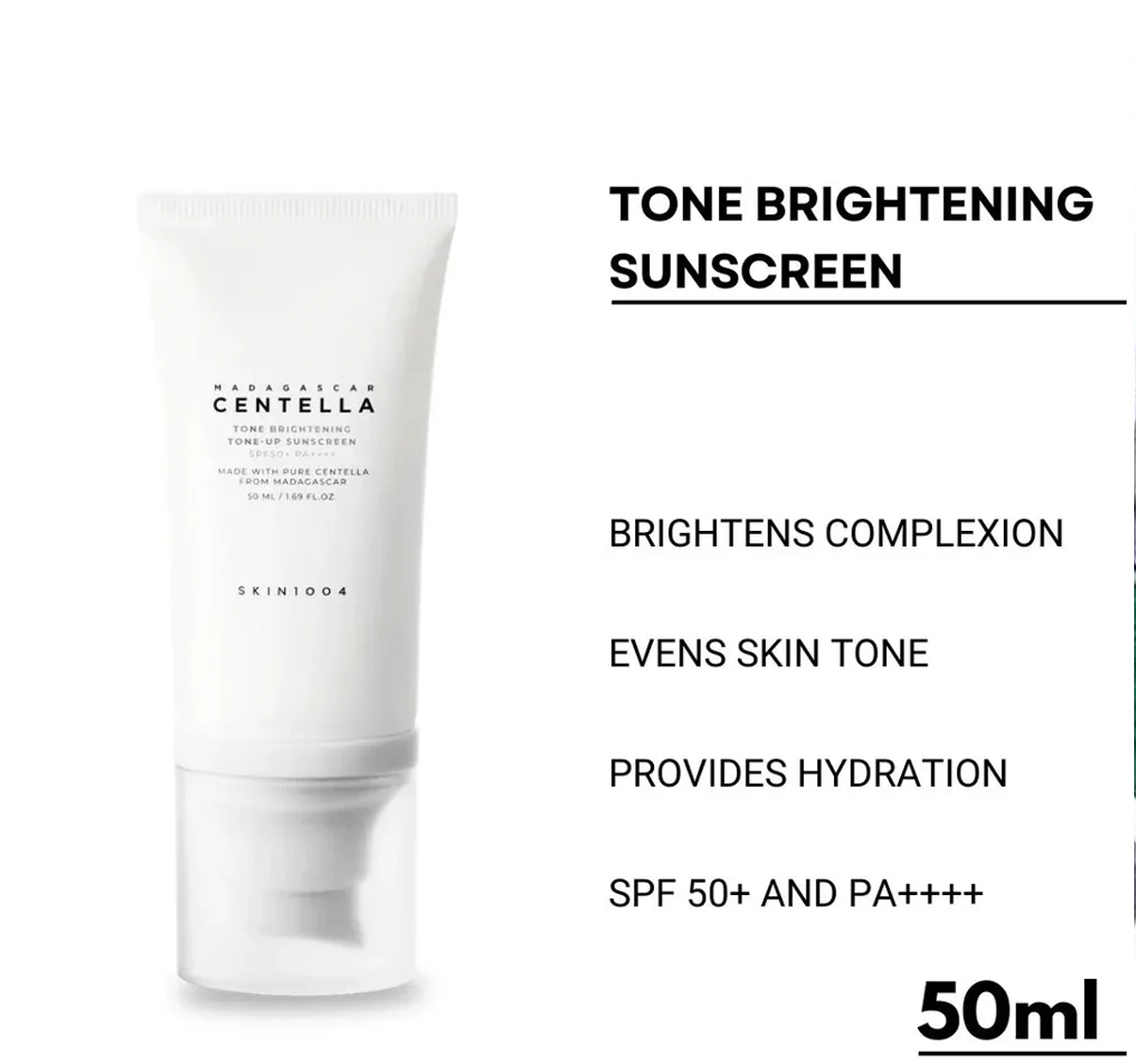 Skin1004 Madagascar Centella Tone-Up Sunscreen SPF50+ PA+++ 50ml is an excellent choice for anyone looking for reliable sun protection with added skin-brightening benefits. Its soothing formula, lightweight texture, and natural tone-up finish make it a must-have daily sunscreen.